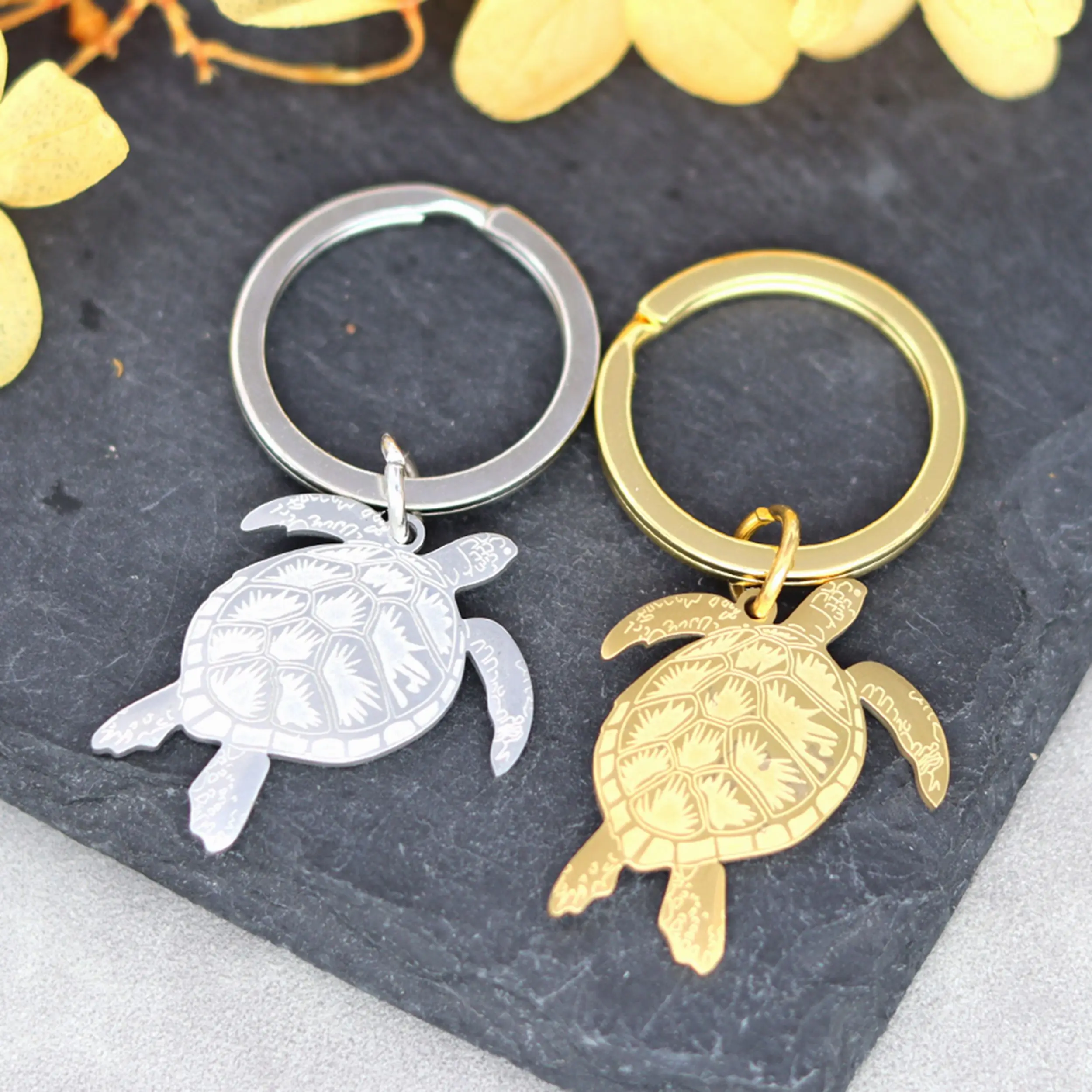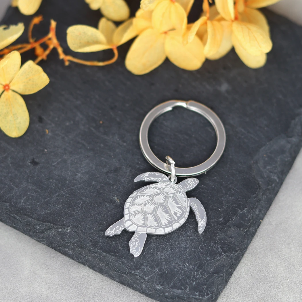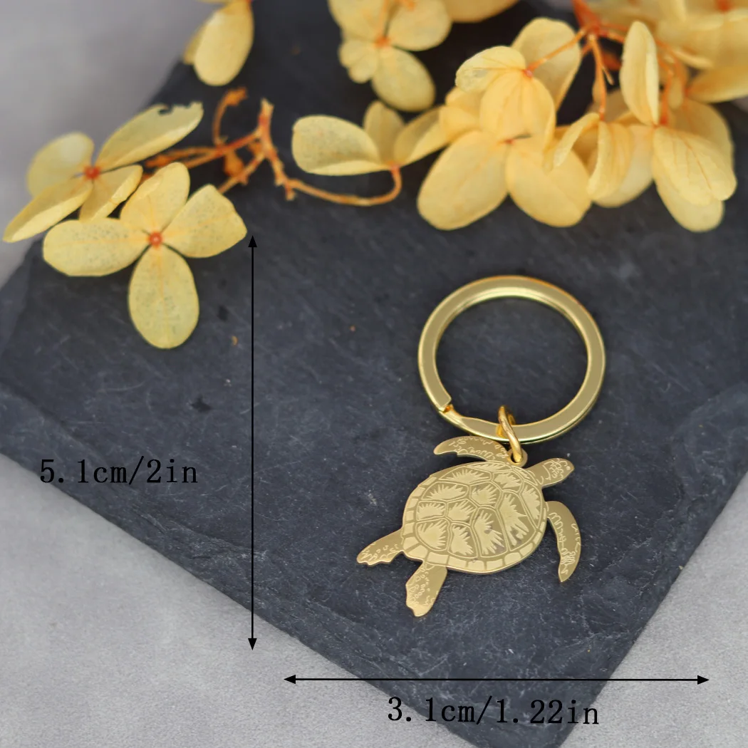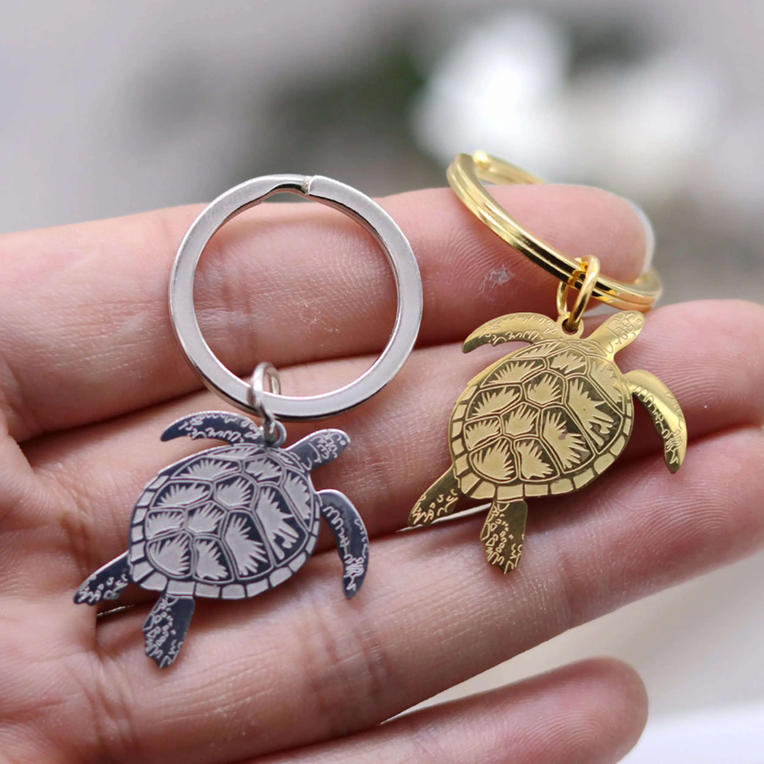 Top Sell Sea Turtle DIY Craft Keychain Stainless Steel Pendant Charms Unisex Jewelry Bag Car Key Ring Decor Cartoon Kids Gifts